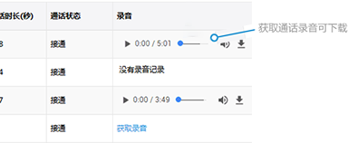可查看当前每个员工的通话情况统计,显示分机号的总通话数,接通数等数据的统计,可获取每次通话的录音,支持数据的下载。